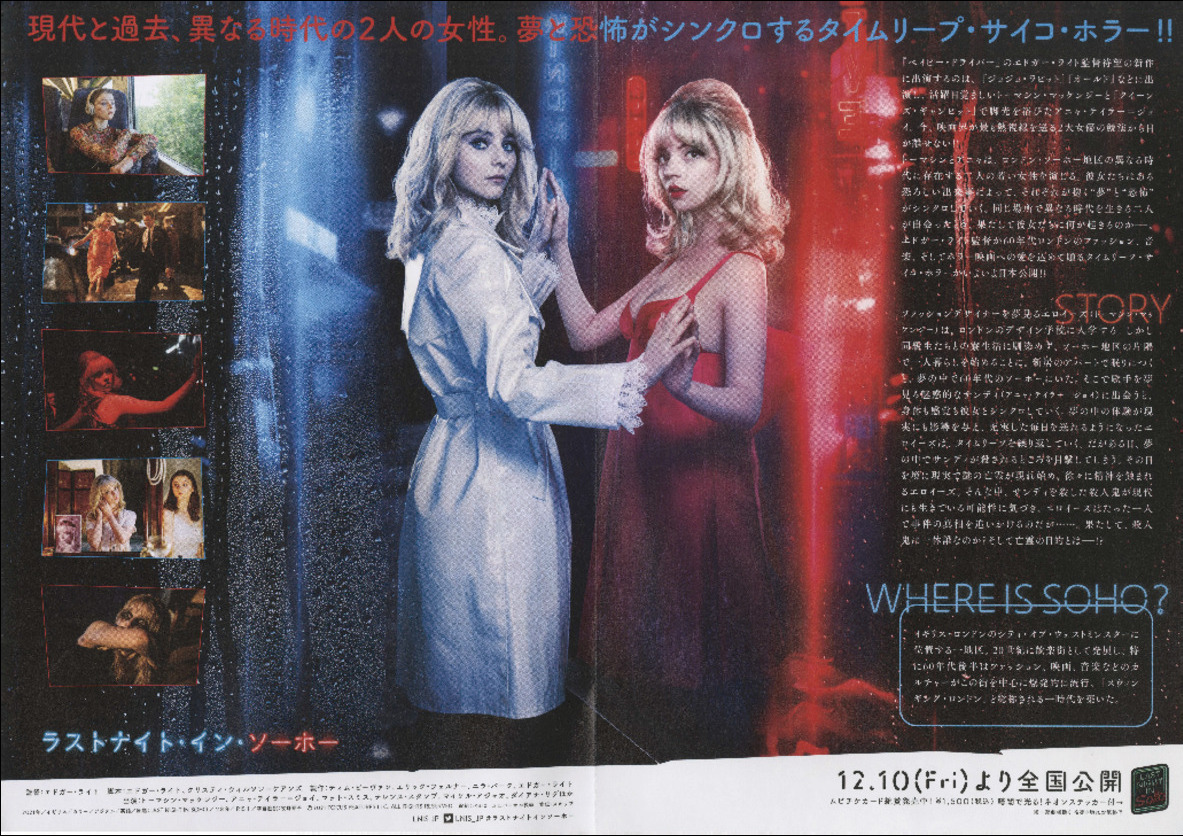 出演:トーマシン・マッケンジー (エロイーズ)、アニャ・テイラー=ジョイ (サンディ)、マット・スミス (ジャック)、ダイアナ・リグ (ミス・コリンズ)