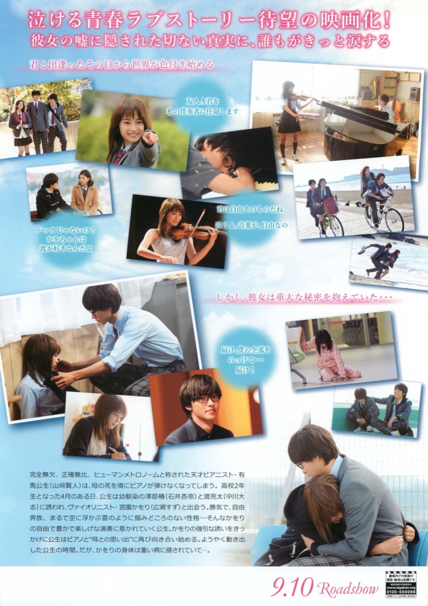 完全無欠、正確無比、ヒューマンメトロノームと称された天才ピアニスト・有馬公生(山﨑賢人)は、母の死を境にピアノが弾けなくなってしまう。